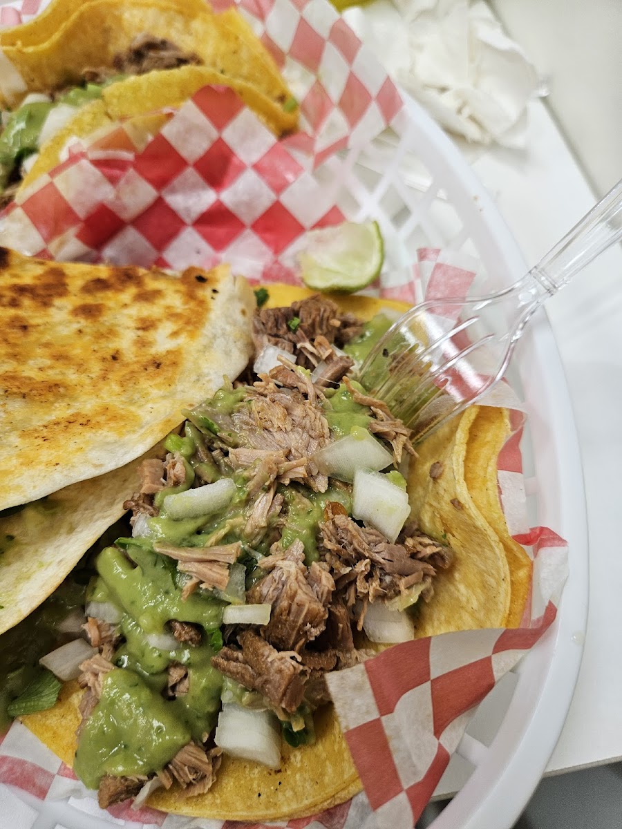 A really authentic Mexican joint, delicious food. I ordered 3 tacos: tripe, beef head (where else could you find it?!) and beef brisket. Tacos are rich with meat filling. Everything was fresh and tasted great, the birria soup too.