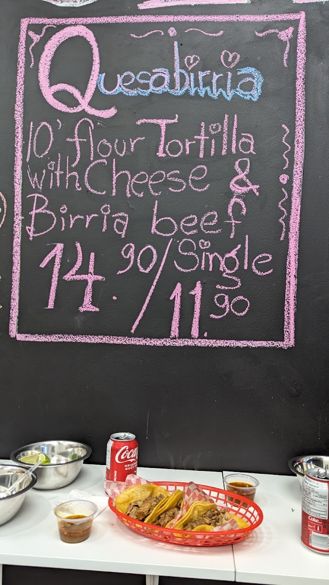 The menu at TacoMex offers a straightforward, comforting selection of classic Mexican dishes, perfect for casual dining or a quick, satisfying meal. You'll find a focus on hearty, flavorful bites like quesabirria—flour tortillas filled with slow-cooked brisket and melted cheese—and a variety of tacos featuring tender steak and rich birria. These options work well for lunch, dinner, or whenever you’re in the mood for authentic, home-style Mexican food in a relaxed setting.
